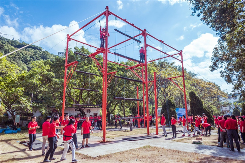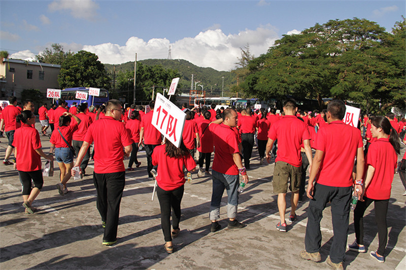 7日一大早,參加拓展活動的員工即分乘10輛大巴,滿懷期待地奔赴此次拓展活動的開展基地——深圳溪涌工人度假村。到基地車甫一停穩,教官的哨聲便催促著眾人馬上列成整齊的隊伍,一隊一隊地行進至主訓練場,聆聽寶鷹集團董事長古少波在拓展訓練正式開始前的講話。